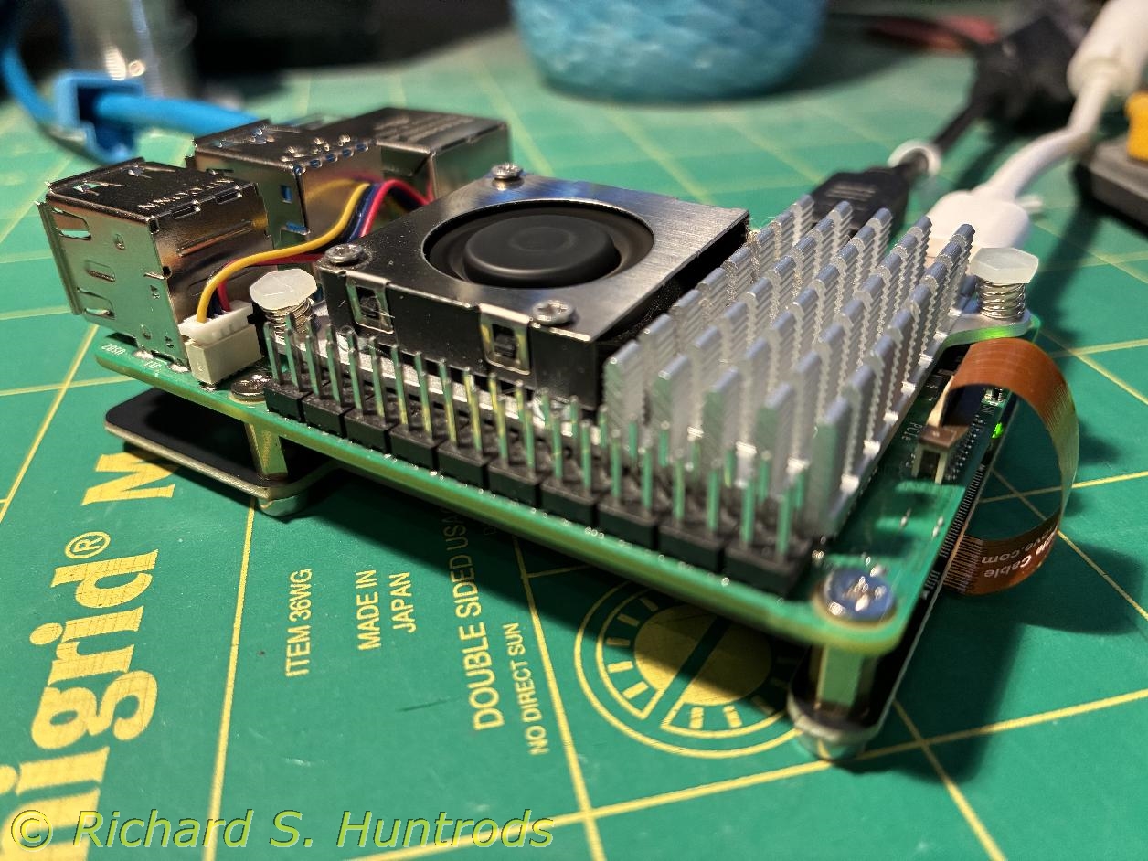 The photo is the Pi-5 with cooling fan and bottom mount NVME card ready to install in the console kit for hardware testing.
